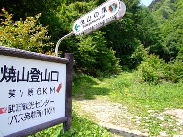 ヘアピンカーブと焼山登山口案内板 | ||||