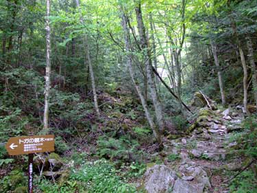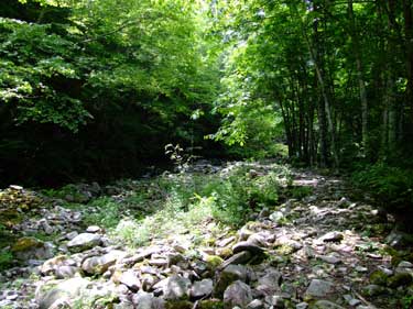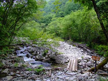 熊に出くわさないことを願いながら沢筋を進む | |||