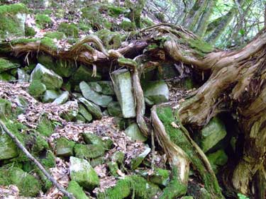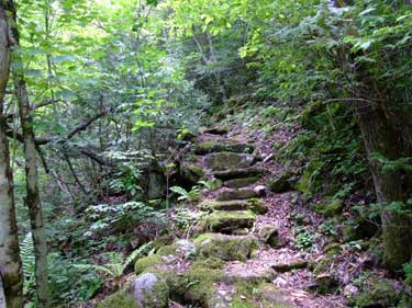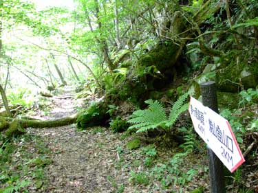 苔むした石段 | 美ヶ原まで4kmの標柱 | |||