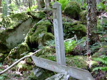 字が消えかかった標柱 下記地図・角材標柱と記載 |