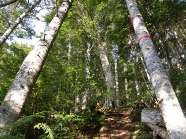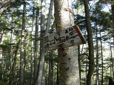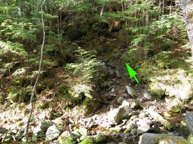 小さな沢を渡ると、ここから胸突き八丁の急登となる |