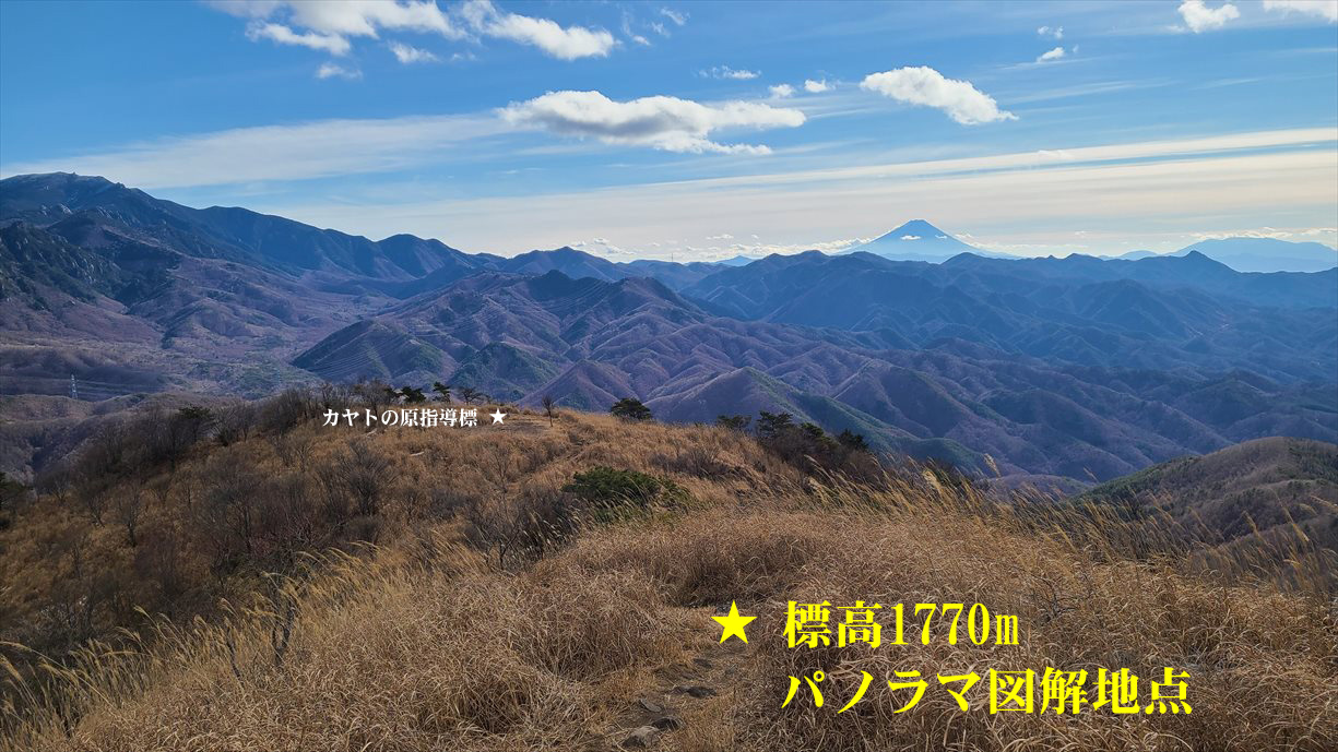横尾山山頂は展望に恵まれないので標高1770M地点からのパノラマ図解で代用します |