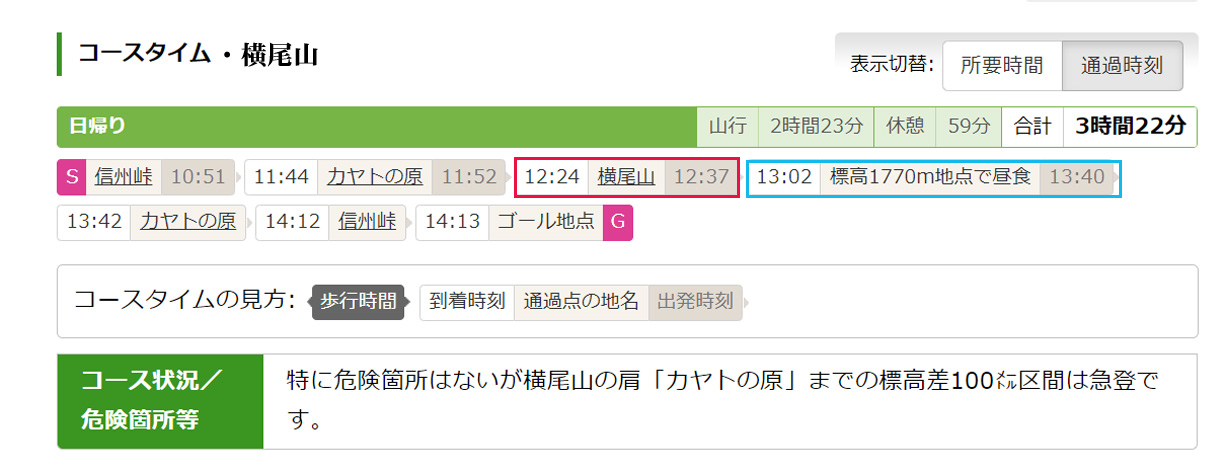 《横尾山コースタイム他》 |