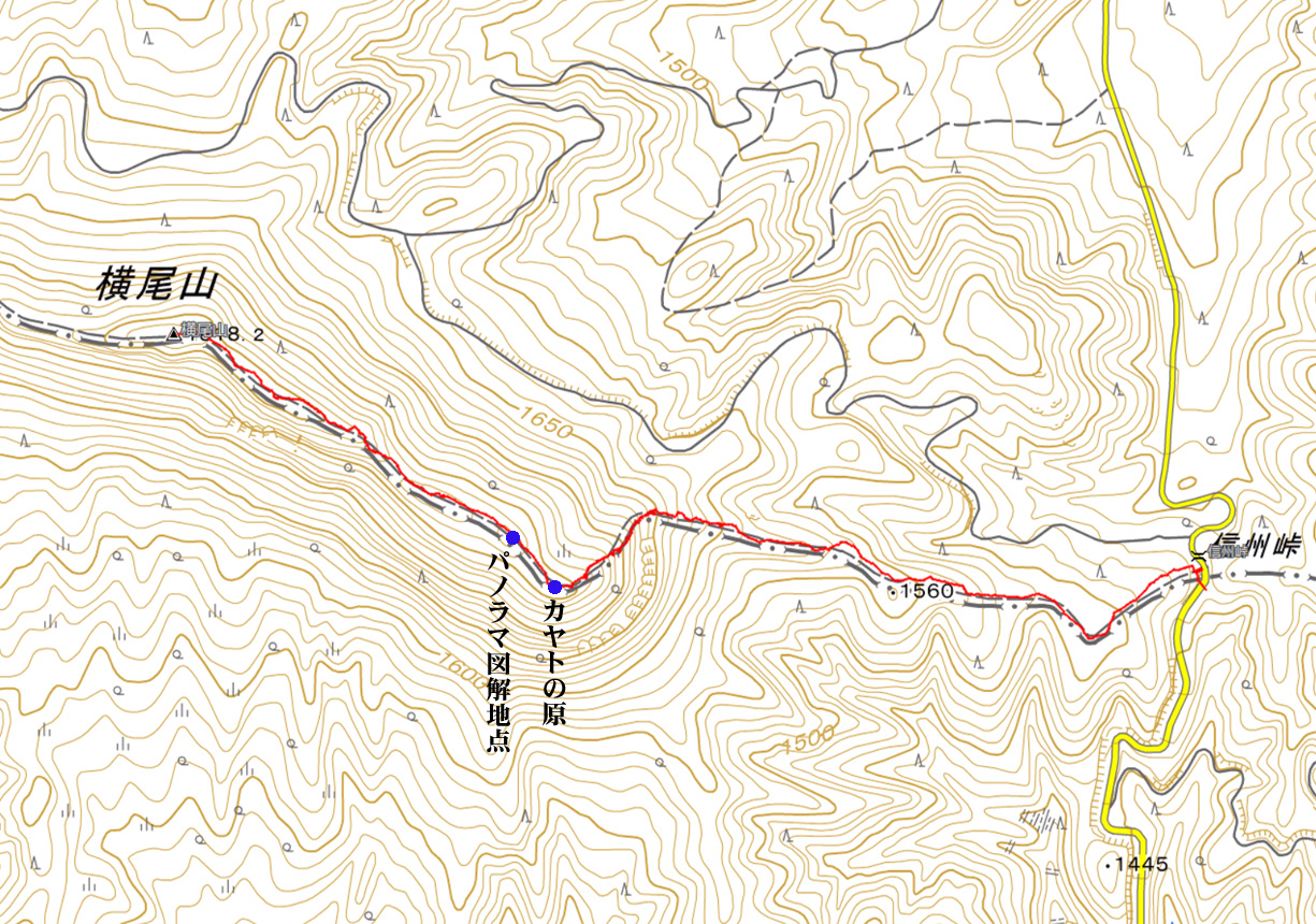 横尾山ルート地図