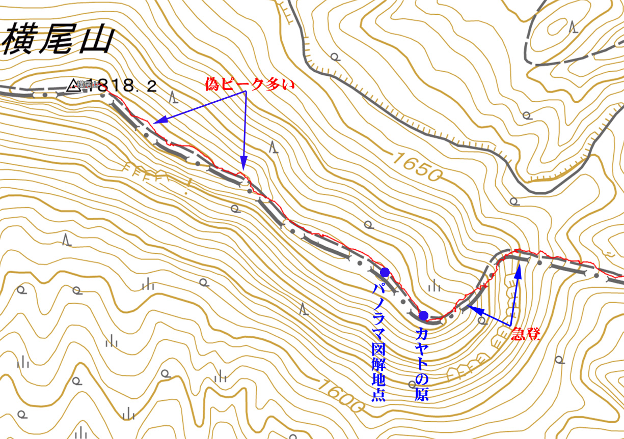 カヤト尾根を通過して横尾山へ |