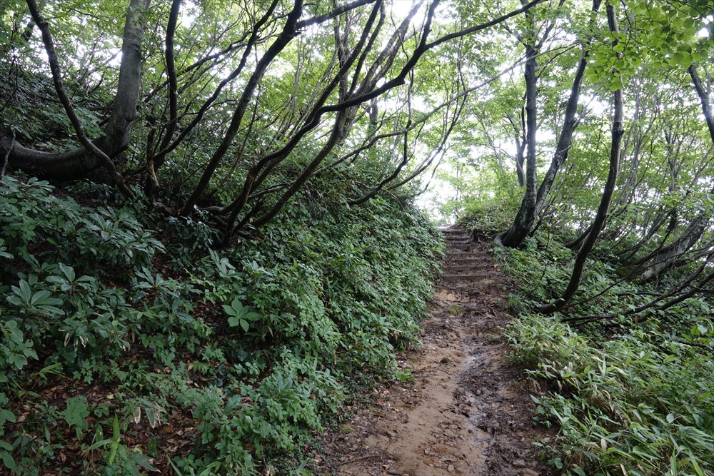 粘土質の登山道なので雨天時の下山はスリップ転倒に注意!