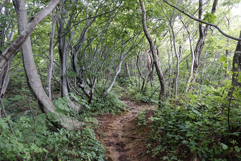 登山道は整備されていて歩きやすいが雨上がりの樹林帯歩きはとんでもなく暑い! |