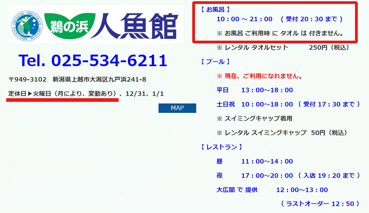 営業時間ほか/公式サイトからスクショ | ||||