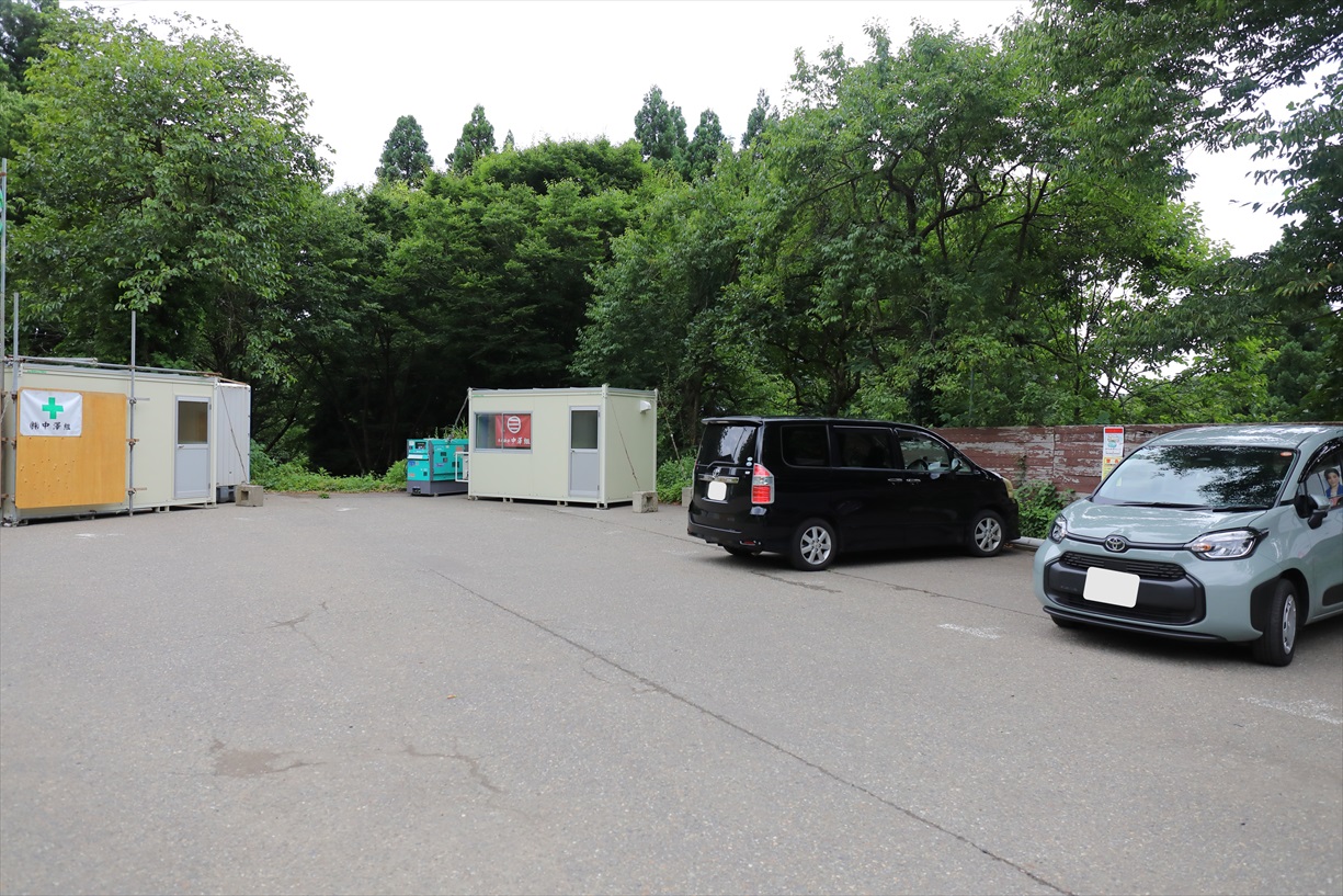 大平登山口駐車場 下山後に知った事ですが登山口駐車場新設工事のため来年3月末日まで 「駐車場に至る林道と駐車場」は使用禁止とのことでした |