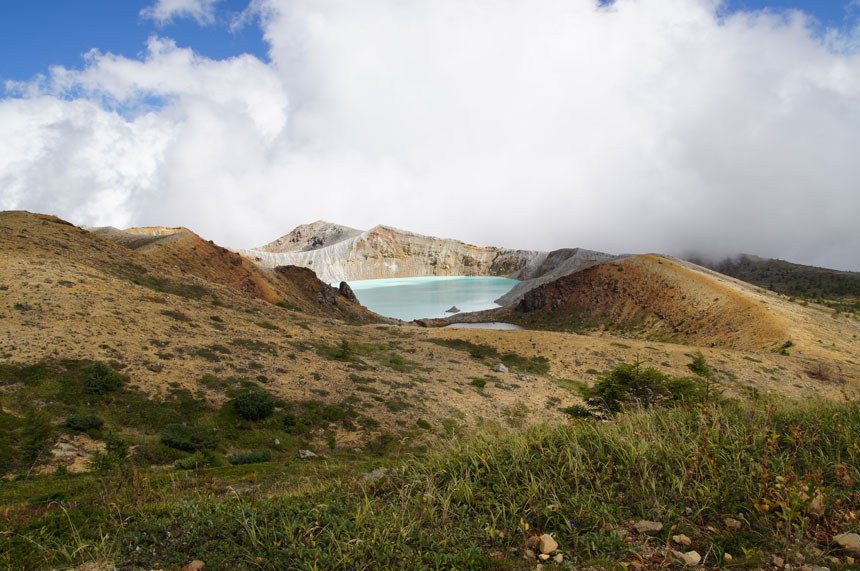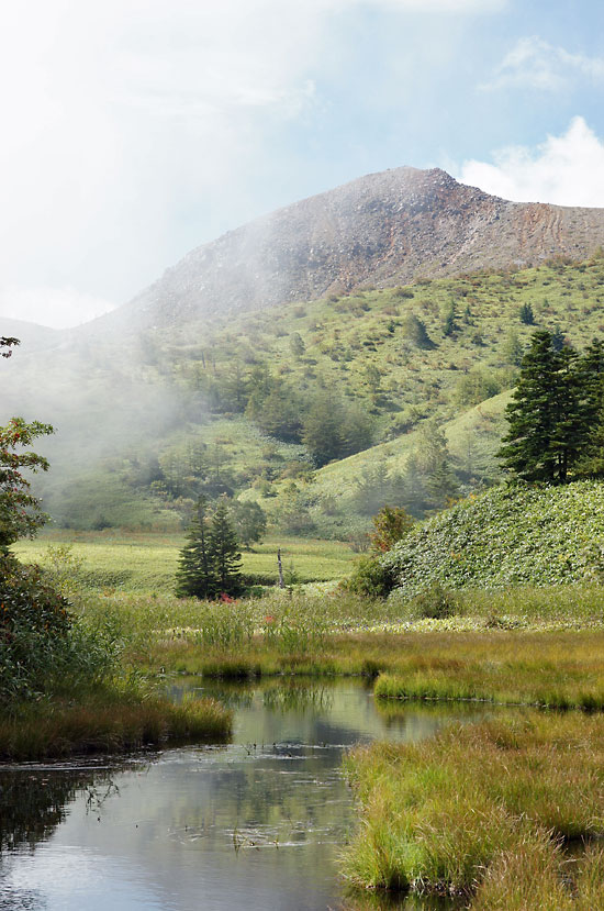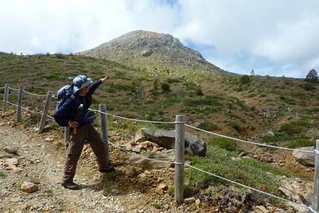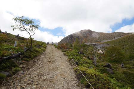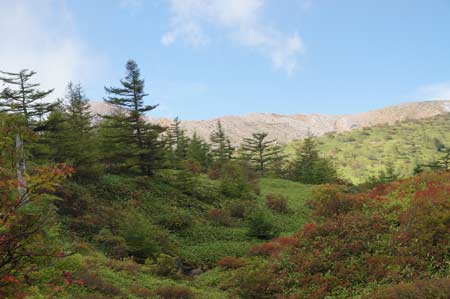 青空の中、白根山の北斜面が見えてきた〜♪ |