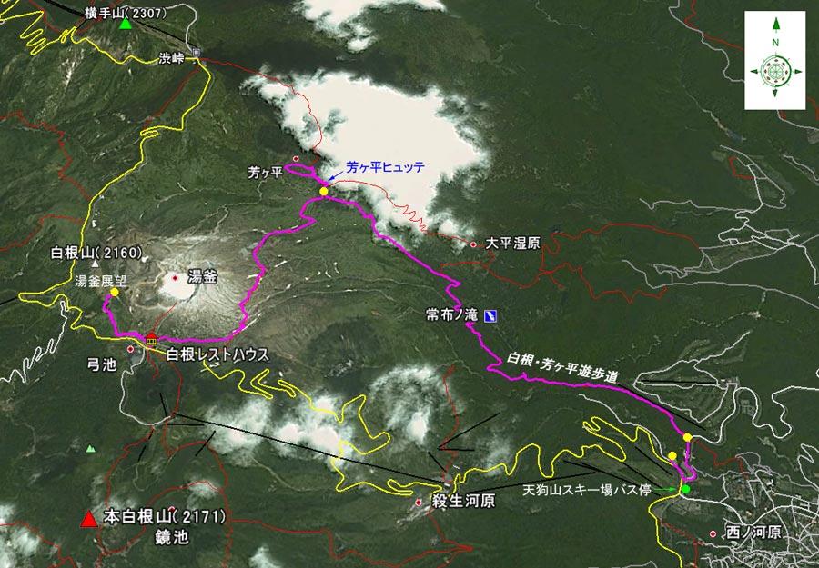 駐車場・バス停・白根 芳ヶ平方面遊歩道入口の拡大図 |