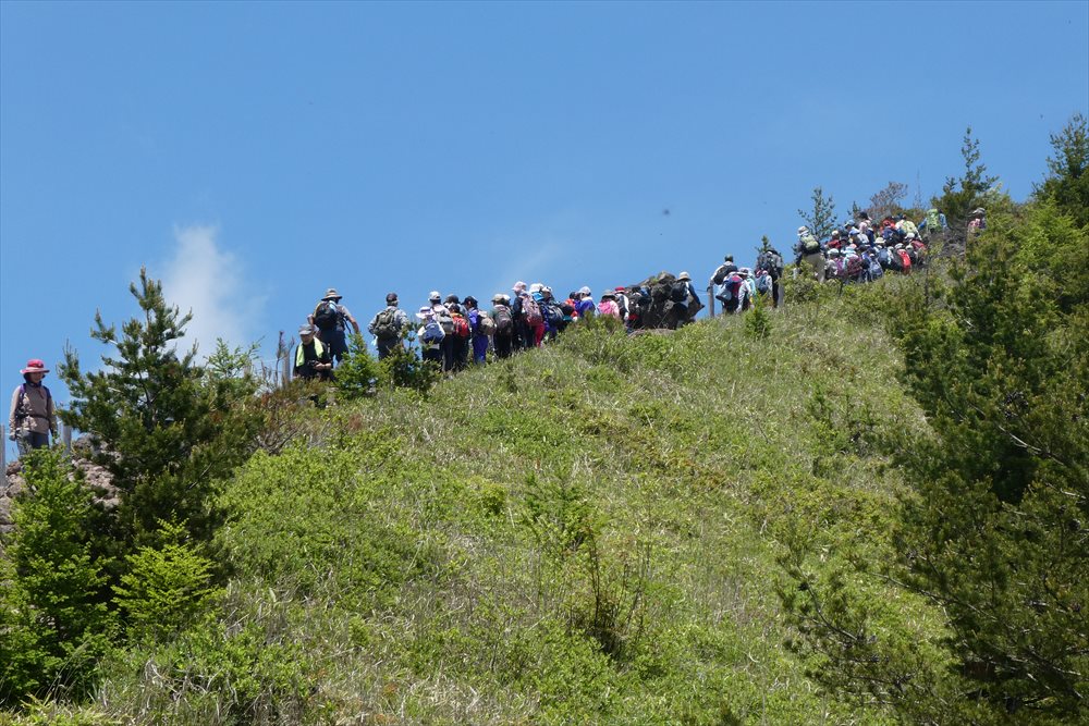 鞍部で先発下山した小学校登山とかち合ってしまう (ToT) | ||||
