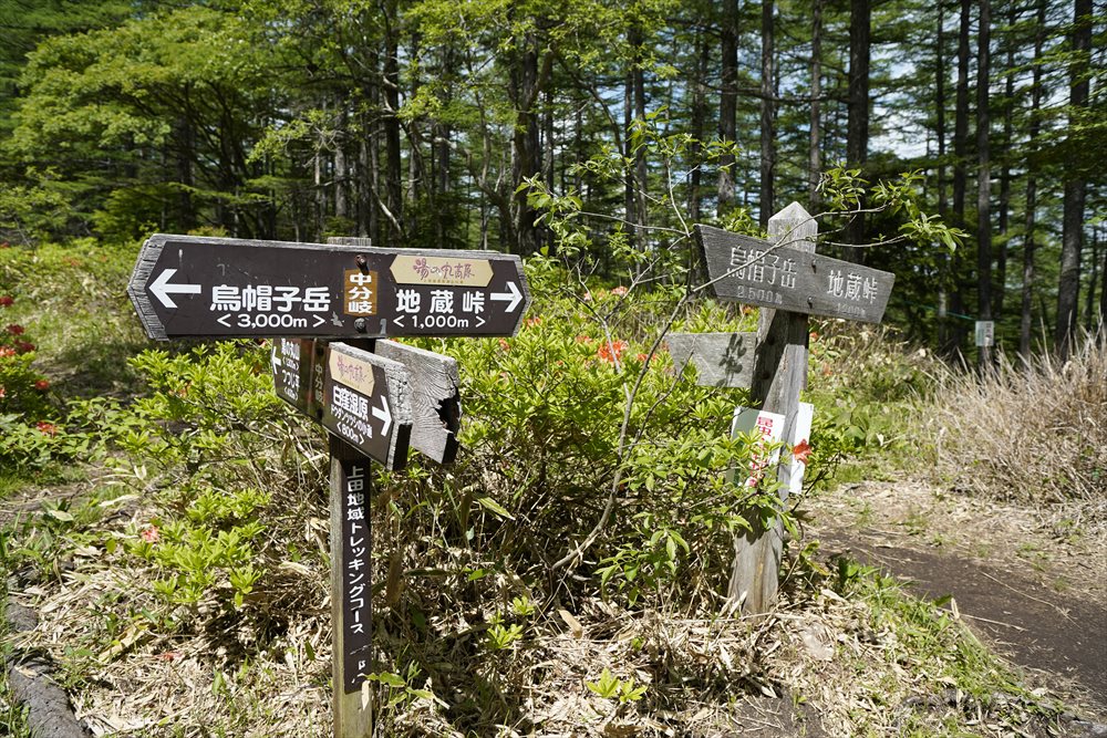 鞍部(小梨平)分岐点/烏帽子岳の帰りは地蔵峠へ直帰です | ||||